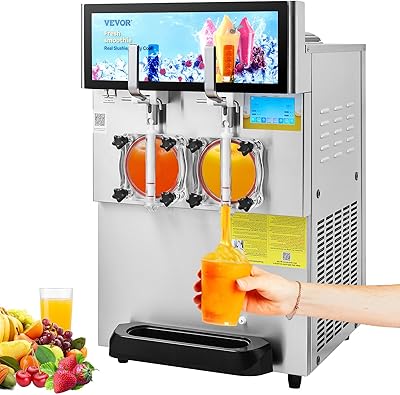 VEVOR Commercial Slushy Machine 2 x 8L2.1 Gal Double Tank 1800W Stainless Steel Margarita Smoothie Frozen Drink Maker, Cool and Freeze Modes, for Party Cafes Restaurants Bars Home Use, Silver